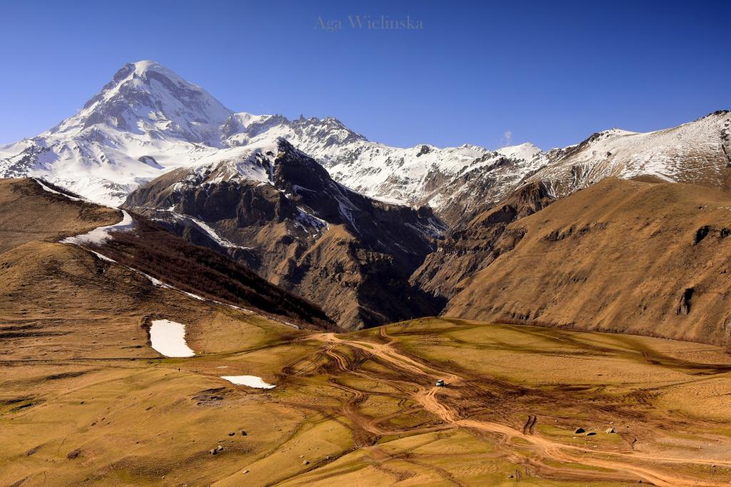 [FOTO] Widok na Kazbek spod cerkwi Cminda Sameba.