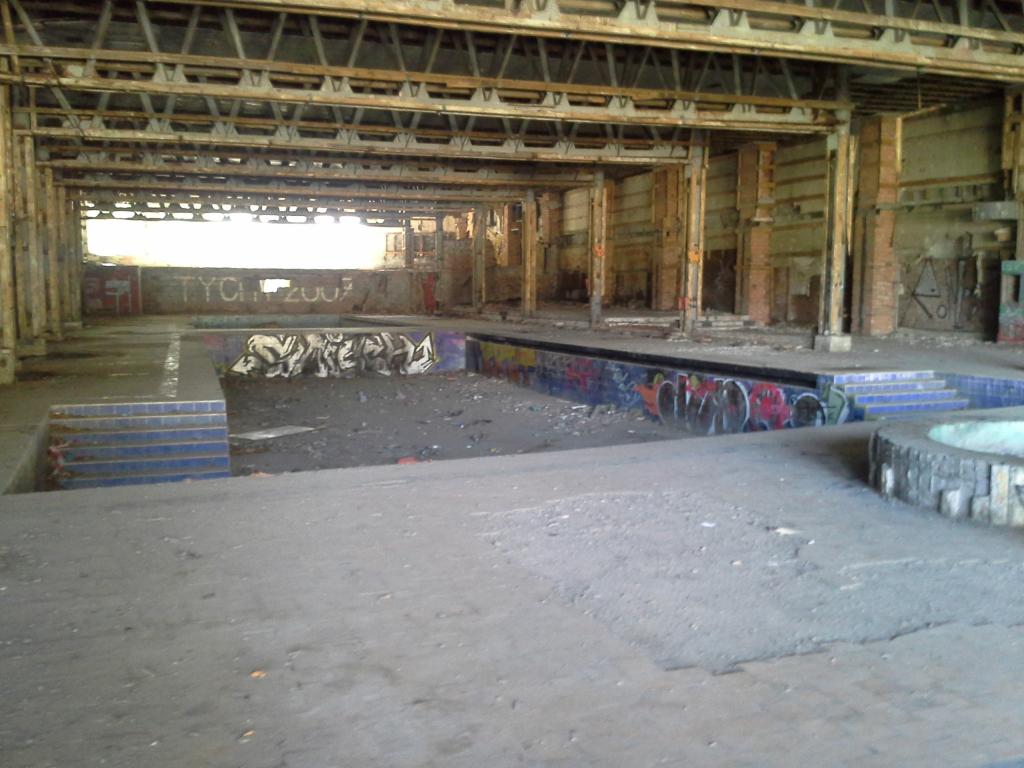 [FOTO] Basen w Kozubniku ze schodami z dwóch stron z tyłu drugi trochę mniejszy po prawej fragment fontanny